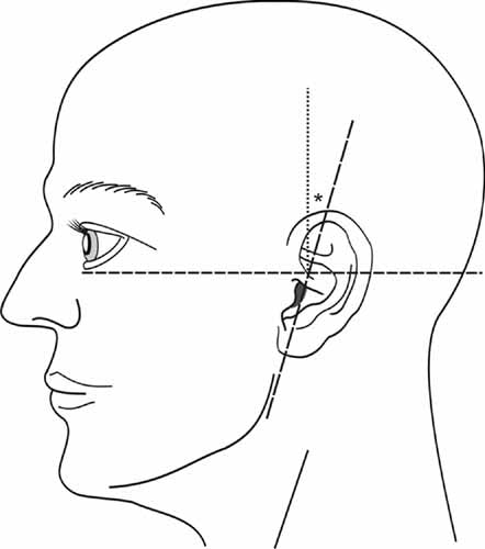Position the head so that the plane passing through these two points is level, placing the head in a natural posture.